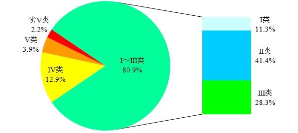 圖1 2020年4月全國(guó)地表水水質(zhì)類別比例